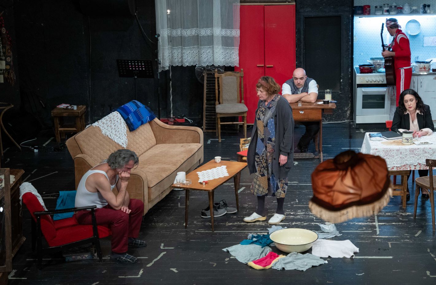 U predstavi igraju Miro Barnjak, Bojan Beribaka, Angela Bulum, Jelena Kordić Kuret, Nikolina Marić, Jadranka Popović Miljko i Ivan Skoko.