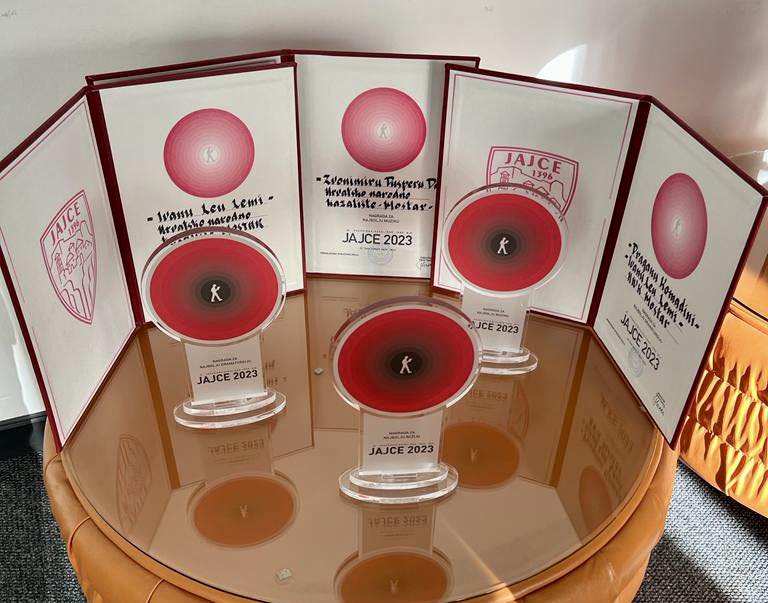 Predstava “Sretni ljudi” autorice Nine Mitrović u režiji Ivana Lea Leme na 42. Pozorišnim/Kazališnim igrama u Jajcu osvojila je tri nagrade: Nagrada za najbolju režiju Ivanu Leu Lemi, Nagrada za najbolju dramaturgiju Ivanu Leu Lemi i Draganu Komadini te Nagrada za najbolju muziku Zvonimiru Dusperu Dusu. Ovo je prvo festivalsko gostovanje predstave “Sretni ljudi”, a za Hrvatsko narodno kazalište u Mostaru zaključenje uspješne sezone u kojoj je osvojeno ukupno 12 nagrada.